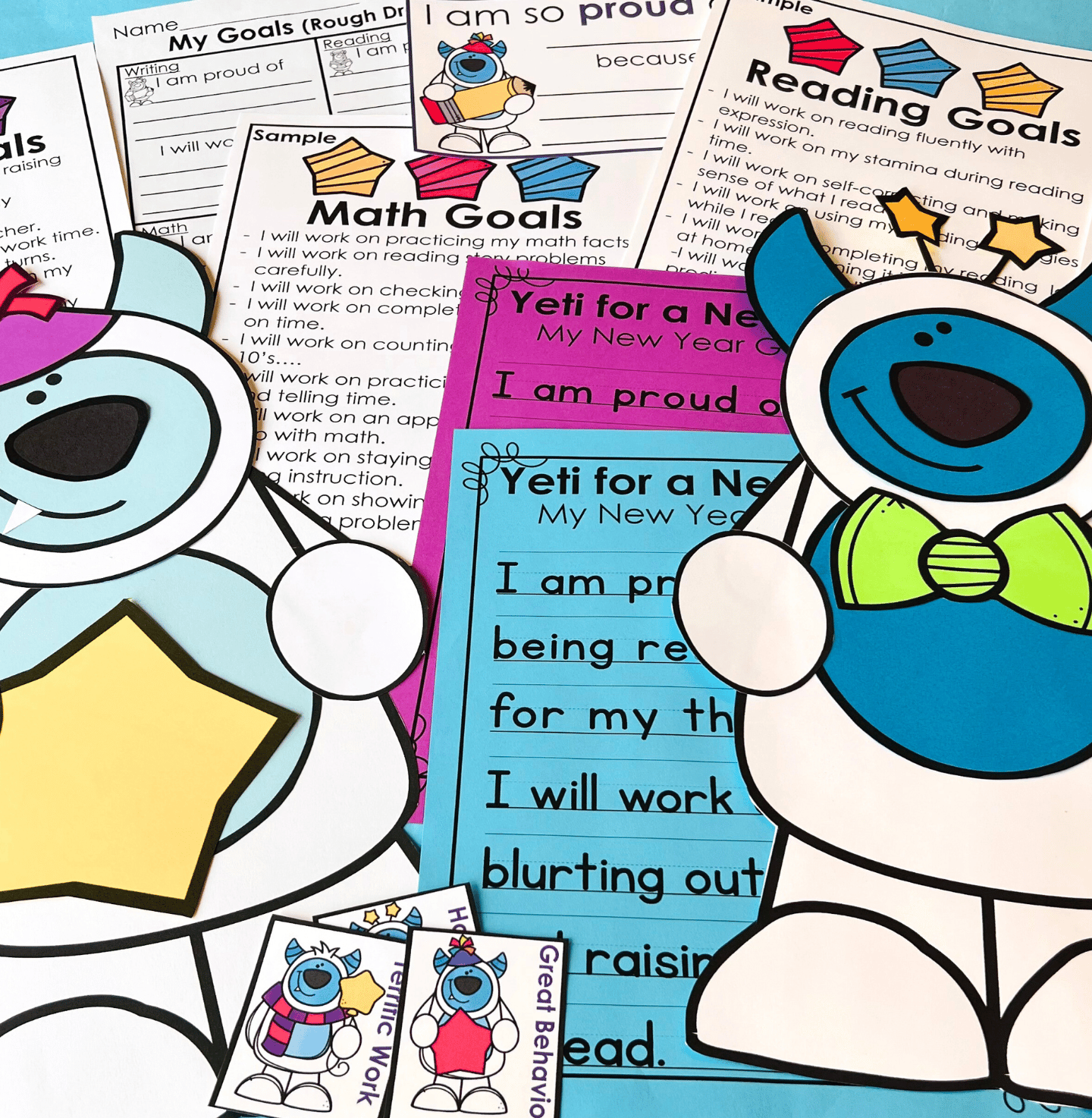Additionally, you’ll find four pages of sample goals. Display these on your smart board or bulletin board to inspire your students with ideas they can strive for. The letters spelling "Yeti for a New Year" are also included to enhance your classroom display.