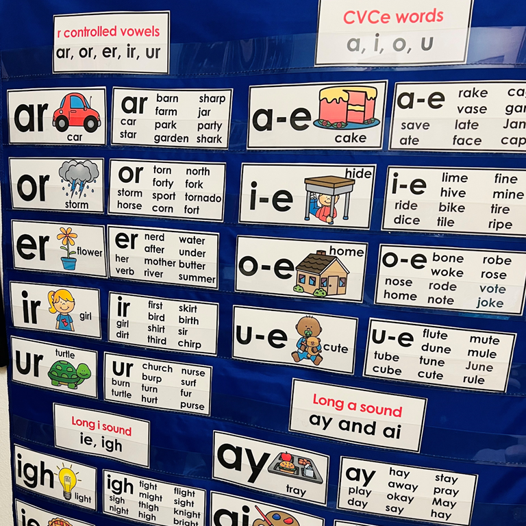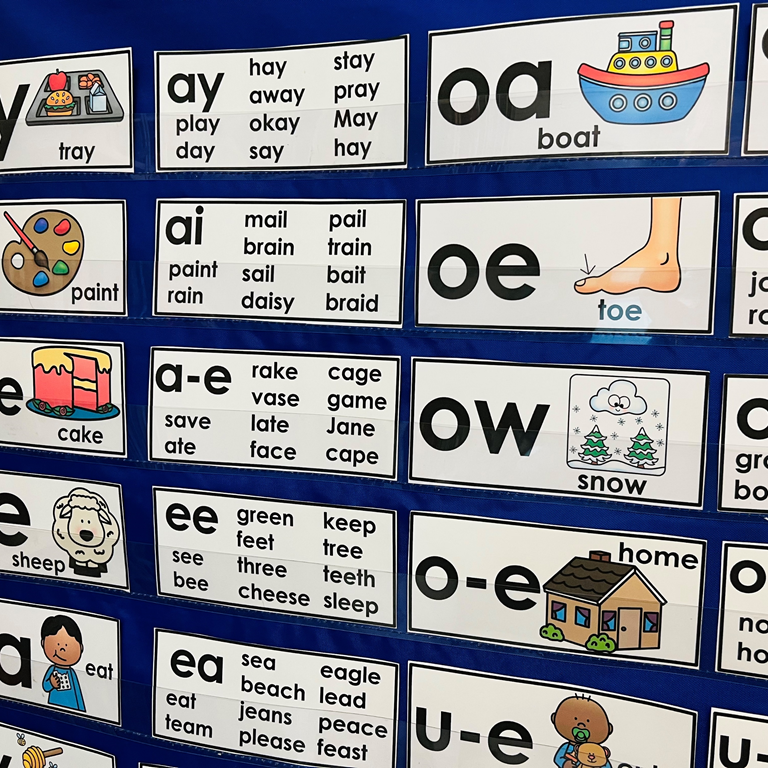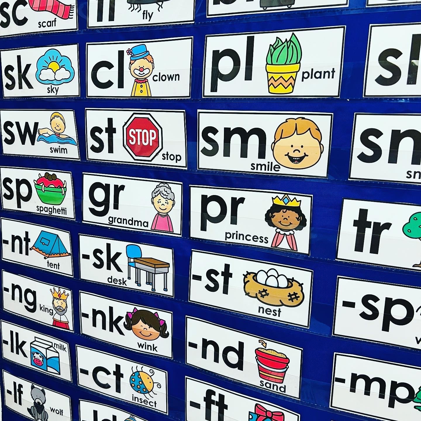I also like to display the phonics cards in a pocket chart where we can refer to the sounds often either in small group or whole group instruction.