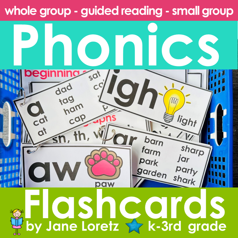 Phonics flashcards are a great tool to use in your classroom for review or introduction in your small group, guided reading or for whole group instruction. These phonics cards work great in the pocket chart or with a binder ring to keep them organized.