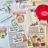 -Wanted poster activity page where students write why that character is wanted. Wanted pages for each of the characters in these fairy tales included.