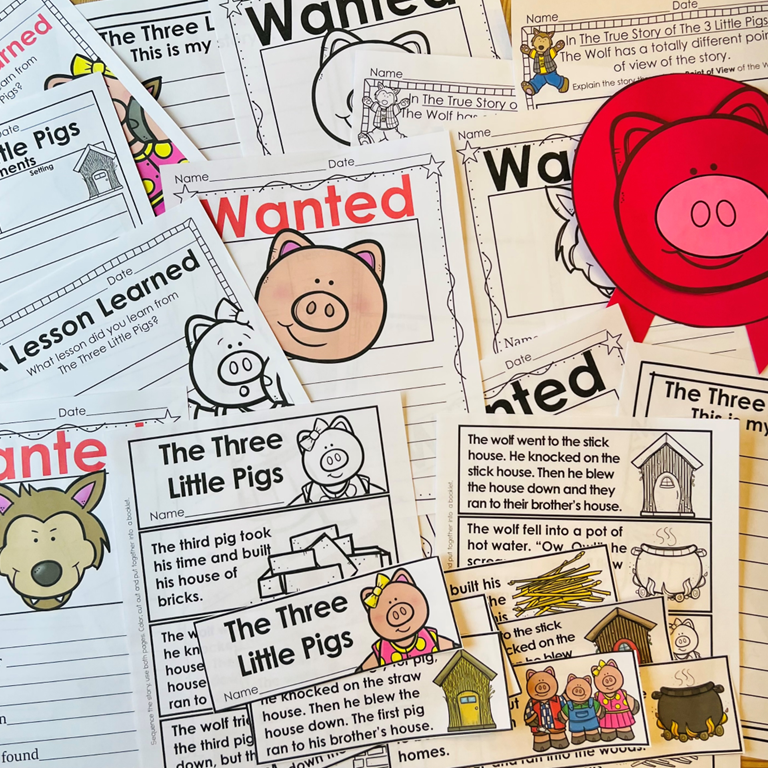 -Point of view sheet with the True Story of the Three Pigs, looking at the Wolf’s side of the story through his point of view.