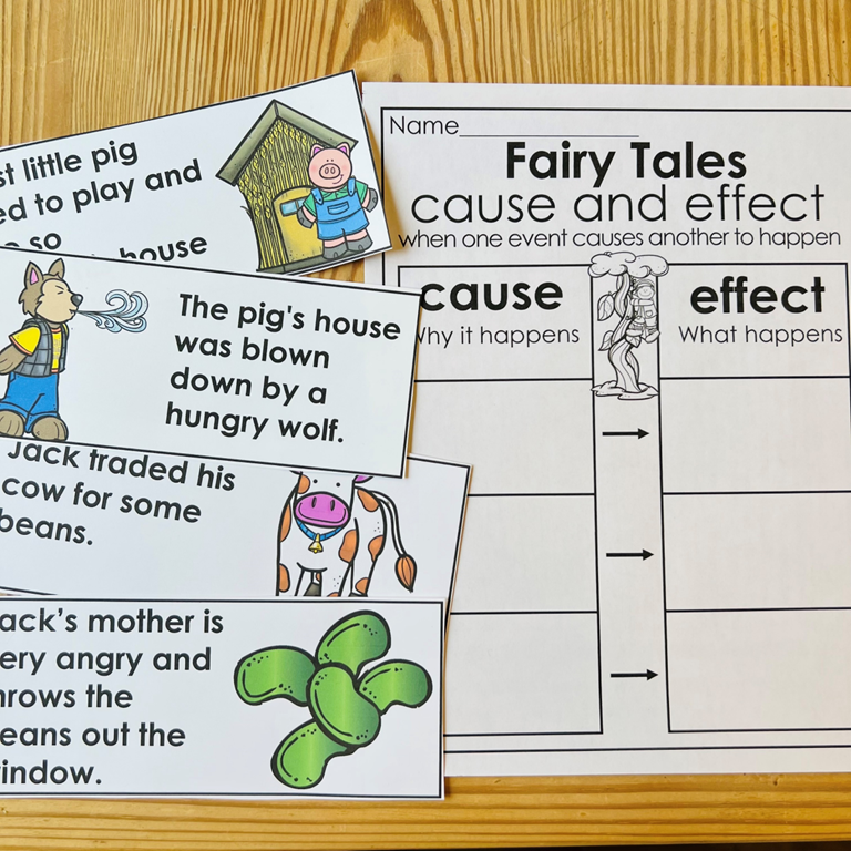 -Cause and Effect pocket chart activity where students sort under the cause or the effect of the story.