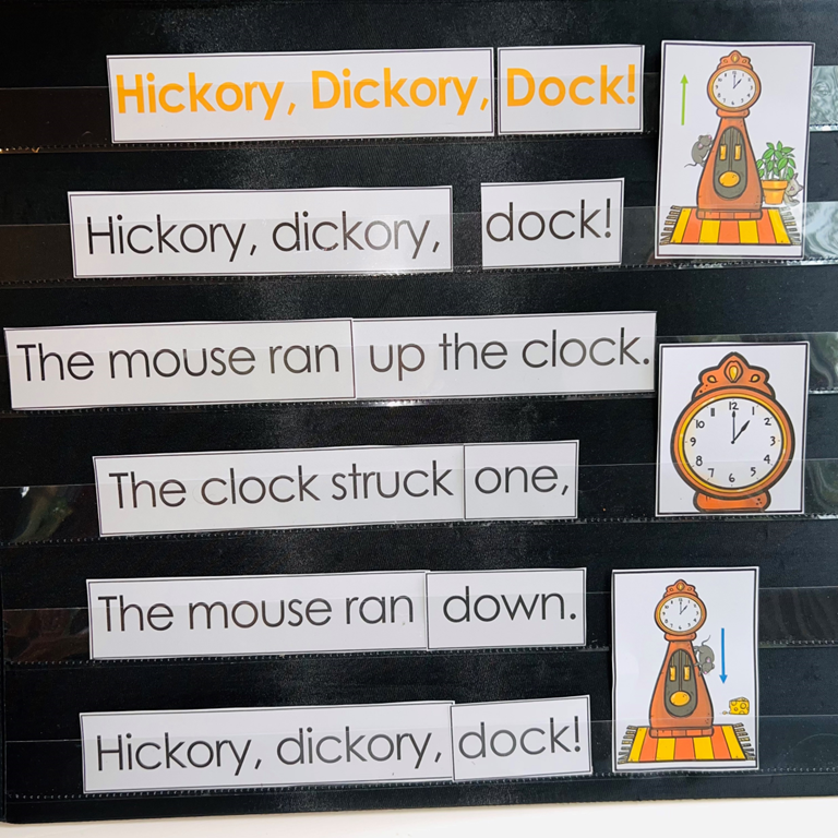 Pocket chart of the nursery rhyme Hickory, Dickory Dock